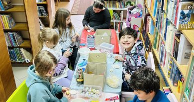 Powstały mi.in. serduszka na drewnianej podstawie, wakacyjne krajobrazy i letnia łąka Calineczki. W ostatnim tygodniu lipca dzieci według własnego pomysłu ozdabiały torby na wypożyczone książki i wykonały książkowe zakładki.
