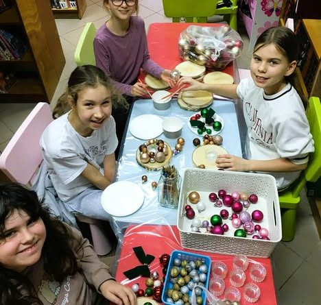 Tuż przed Świętami Bożego Narodzenia dziewczyny przygotowały w bibliotece piękne dekoracje świąteczne na stoły wigilijne i nie tylko.